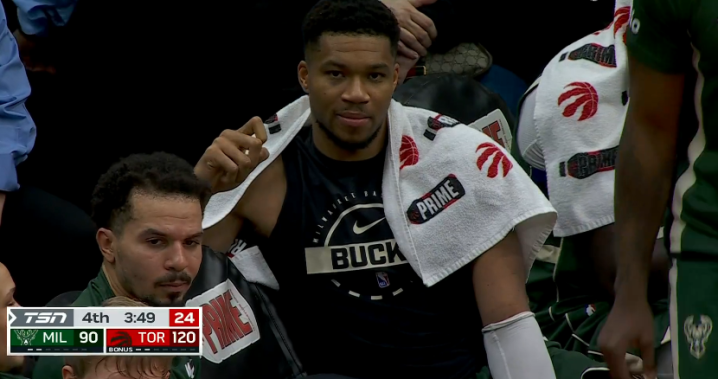 昨天字母哥轰下33分13篮板5助攻并且贡献压哨绝杀,今日客场背靠背对阵猛龙,字母哥肆虐禁区太蛮横,无奈球队整体进攻糟糕,雄鹿早早挖下大坑,再加上连续客场作战,字母哥提前一节放弃比赛。